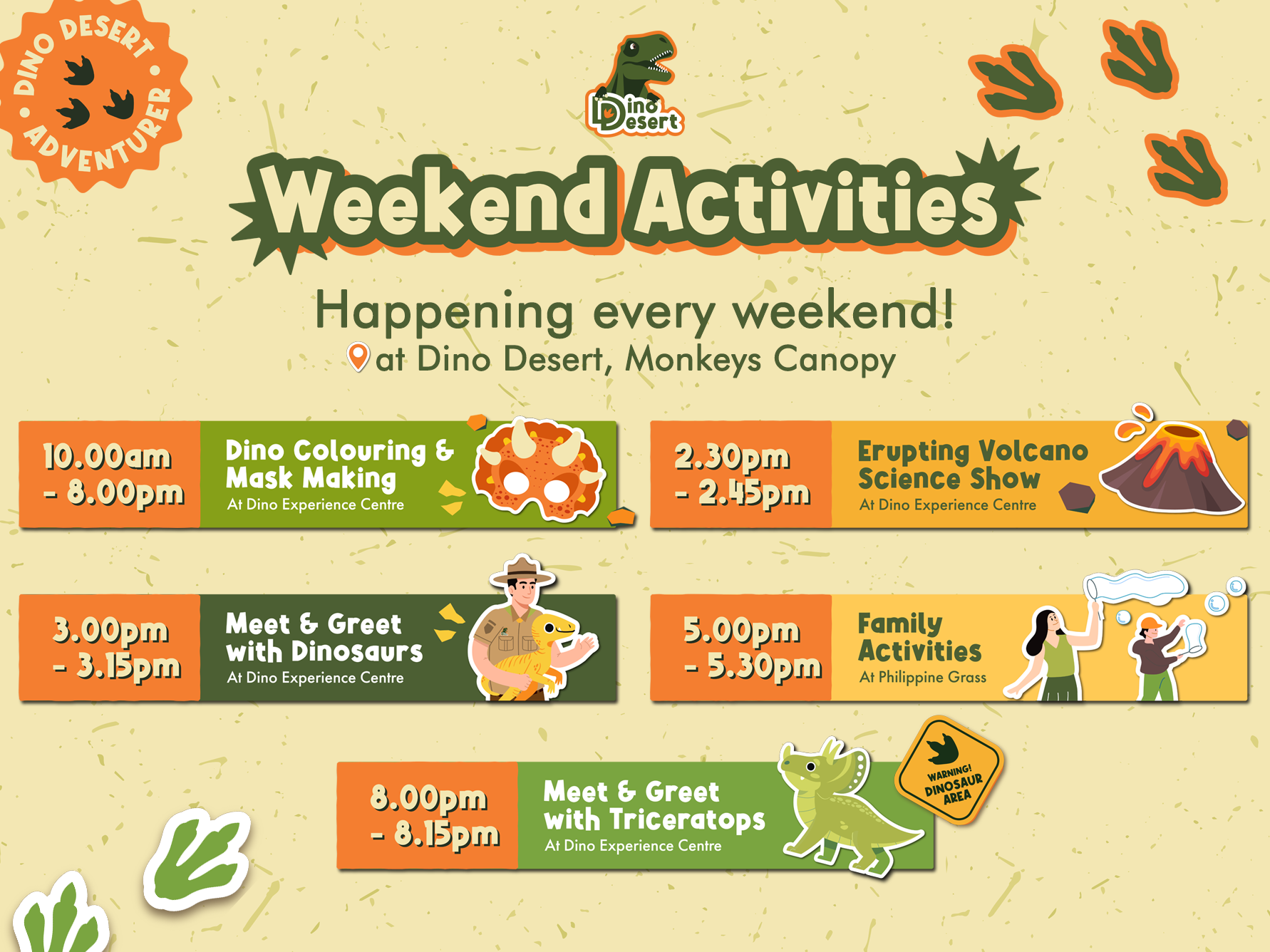 * Due to Malaysia’s tropical climate, thunderstorm and heavy rain occur regularly. In the event of thunderstorm or heavy rain guest is advised to take cover and stay under the shade. There will be no refund in the event of inclement weather.